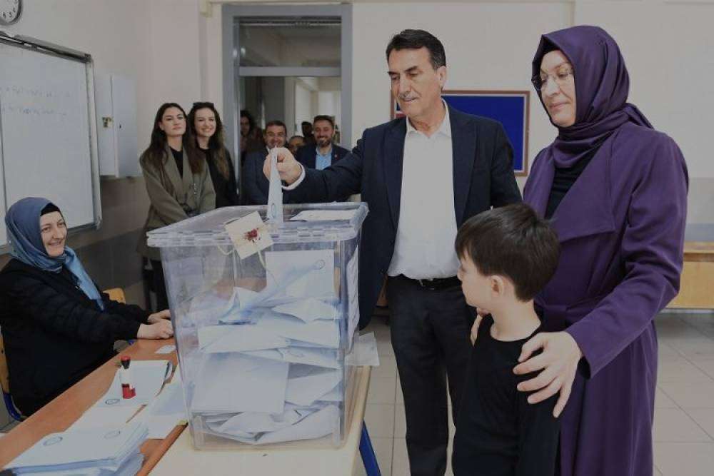 Bursa'da Osmangazi Belediye Başkanı ve Cumhur İttifakı Başkan Adayı Mustafa Dündar, oyunu ailesiyle birlikte kullandı.